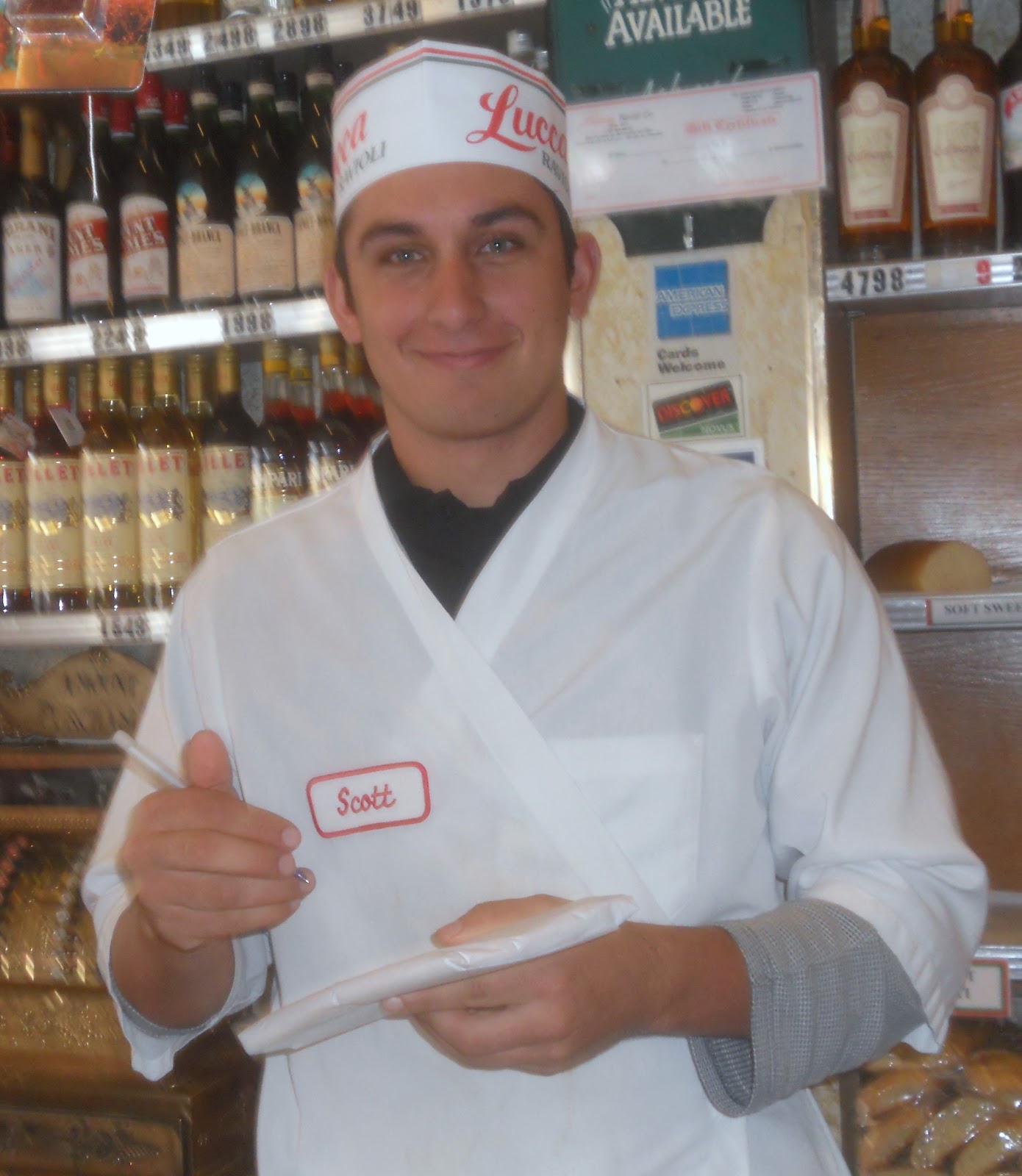Young Scott works at Lucca's Ravioli Store on Valencia Street and the entire gang at this Italian deli are good men, providing service with a smile. Everyone knows when you want old world fresh Italian meats, assorted cheeses and delicious pastas, Lucca's is where you shop. I'm thinking of asking for one of their hats to wear at the Folsom Street Fair in September.