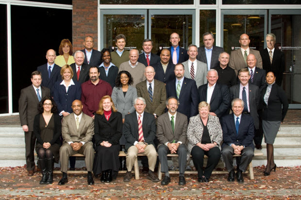 (Members of Harvard's Executive Session on Policing and Public Safety pose for a group photo. DA Gascon is in the back row, on the far right. Credit: Harvard University.)